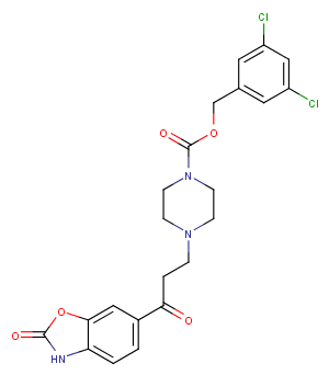 | SMILES | C1CN(CCN1CCC(=O)c1cc2c(cc1)[nH]c(=O)o2)C(=O)OCc1cc(cc(c1)Cl)Cl |
