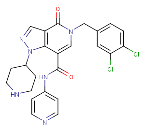 | SMILES | O=C(NC1=CC=NC=C1)C(C2=C3C=NN2C4CCNCC4)=CN(CC5=CC=C(Cl)C(Cl)=C5)C3=O |