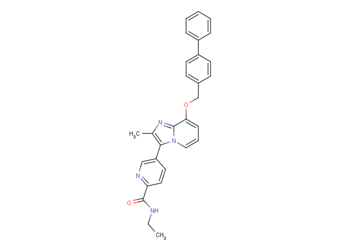 | SMILES | O=C(C1=NC=C(C2=C(C)N=C3C(OCC4=CC=C(C5=CC=CC=C5)C=C4)=CC=CN32)C=C1)NCC |