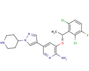 Crizotinib is an ATP-competitive small-molecule tyrosine kinases inhibitor of c-MET (IC50: 8 nM) and ALK (IC50: 20 nM) receptor.