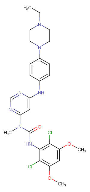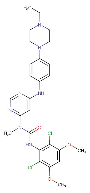 Infigratinib (BGJ398) is an orally bioavailable pan FGFR inhibitor (IC50: 0.9/1.4/1 nM for FGFR1/2/3), >40-fold selective for FGFR versus FGFR4 and VEGFR2.