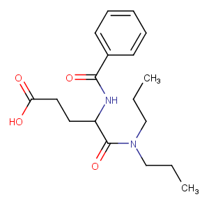 Proglumide is a cholecystokinin antagonist, which blocks both the CCKA and CCKB subtypes. Proglumide is a drug that exerts an inhibitory effect on gastric secretion and reduces gastrointestinal motility. It is used clinically in the drug therapy of gastrointestinal ulcers.