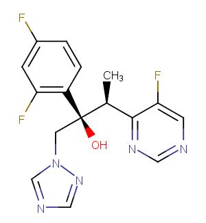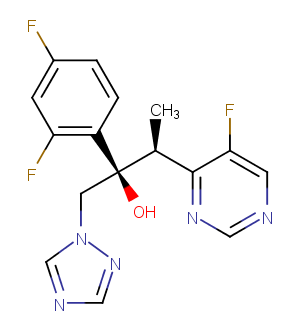 Voriconazole is a triazole antifungal agent that specifically inhibits STEROL 14-ALPHA-DEMETHYLASE and CYTOCHROME P-450 CYP3A.