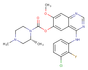 AZD3759 is an orally active, effective and central nervous system-penetrant EGFR inhibitor. The IC50 values were 0.2, 0.3 and 0.2 nM for EGFR L858R mutant, TK wild-type, and Exon 19Del enzymes, respectively.