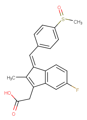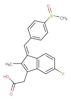 Sulindac is a sulfinylindene derivative prodrug with potential antineoplastic activity. Converted in vivo to an active metabolite, sulindac, a nonsteroidal anti-inflammatory drug (NSAID), blocks cyclic guanosine monophosphate-phosphodiesterase (cGMP-PDE), an enzyme that inhibits the normal apoptosis signal pathway; this inhibition permits the apoptotic signal pathway to proceed unopposed, resulting in apoptotic cell death.