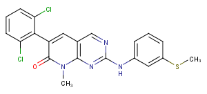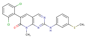 PD173955 is src family-selective tyrosine kinase inhibitor with IC50 of ~22 nM for Src, Yes and Abl kinase; less potent for FGFRα and no activity on InsR and PKC.