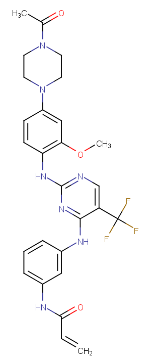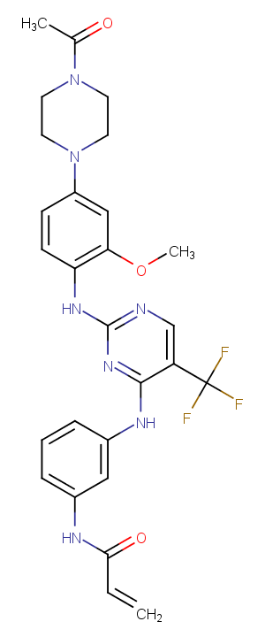 Rociletinib is an orally available small molecule, irreversible inhibitor of epidermal growth factor receptor (EGFR) with potential antineoplastic activity.